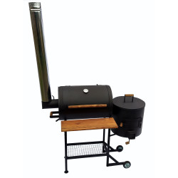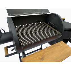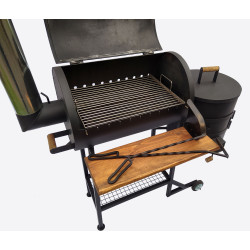 Також передбачена можливість використання шампурів та сітки гриль 380х500 см, для приготування ще більше смачних страв. Має дерев'яну полицю. Смокер оснащений колесами для транспортування по двору.