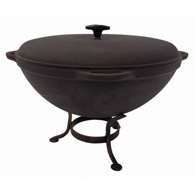 Азіатський чавунний казан на 12 л укомплектований чавунною кришкою та підставкою для казана.