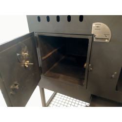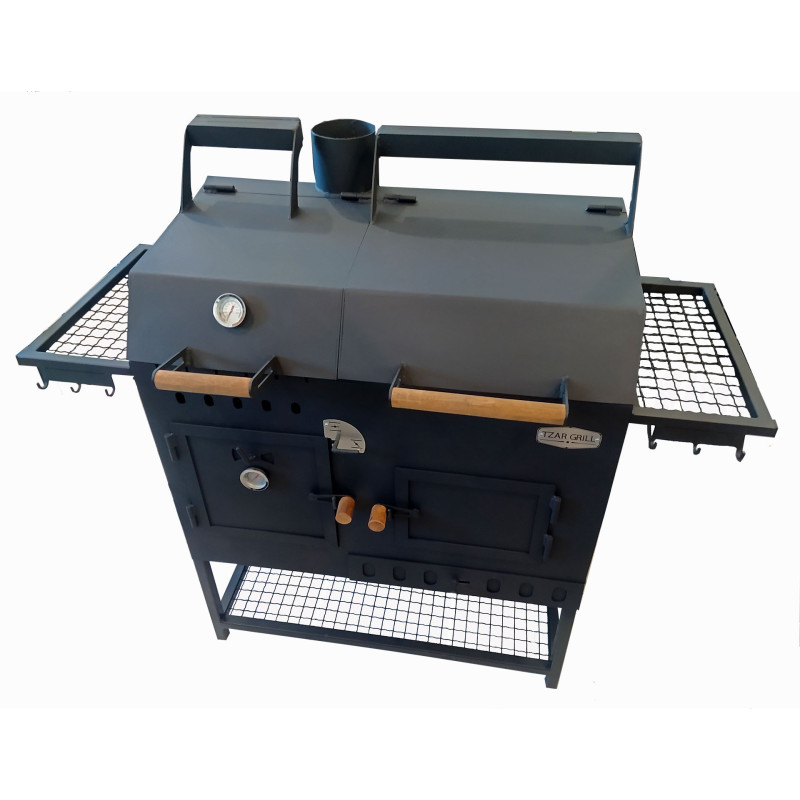 Універсальний гриль комплекс спроектований таким чином, що його можливо використовувати як піч для казана, вугільний мангал - гриль та вбудована духова шафа, що значно розширює його функціонал. Також передбачена можливість використання шампурів та сітки гриль, для приготування ще більше смачних страв. Духова шафа оснащена термометром та заслонкою.