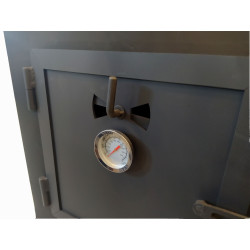 Має регулювання тяги - пічки та мангалу, що забезпечить якісне регулювання темпперати нагріву казана.Дверка має замочок.
