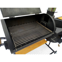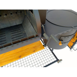 Універсальний смокер - гриль. Основне призначення смокеру - гаряче копчення за амеріканською технологією, однак наш смокер спроектований таким чином, що його можно використовувати як піч для казана або вугільний мангал - гриль, а це значно розширює його функціонал. Також передбачена можливість використання шампурів або сітки гриль, для приготування ще більше смачних страв. Наявність внутрішніх заслонок дає можливість одночасного використання його як піч до казана та мангалу.