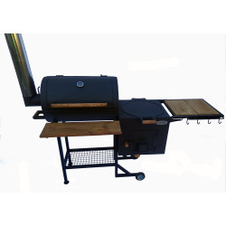 Універсальний смокер - гриль. Основне призначення смокеру - гаряче копчення за амеріканською технологією, однак наш смокер спроектований таким чином, що його можно використовувати як піч для казана або вугільний мангал - гриль, а це значно розширює його функціонал. Також передбачена можливість використання шампурів або сітки гриль.